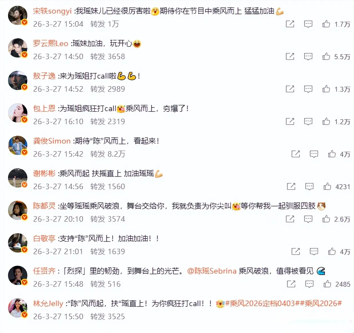 看着文静内敛的她,在圈内朋友可不少,官宣参加节目的评论区和转发区,乌泱泱地来了一大帮明星为她加油。