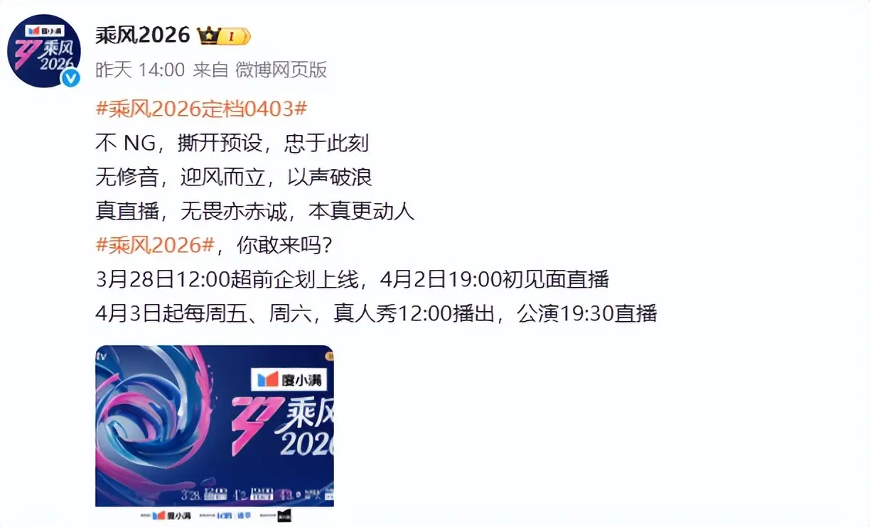 终于等到《乘风2026》(以下简称《浪姐7》)官宣定档了,节目将于4月3日正式跟观众见面。